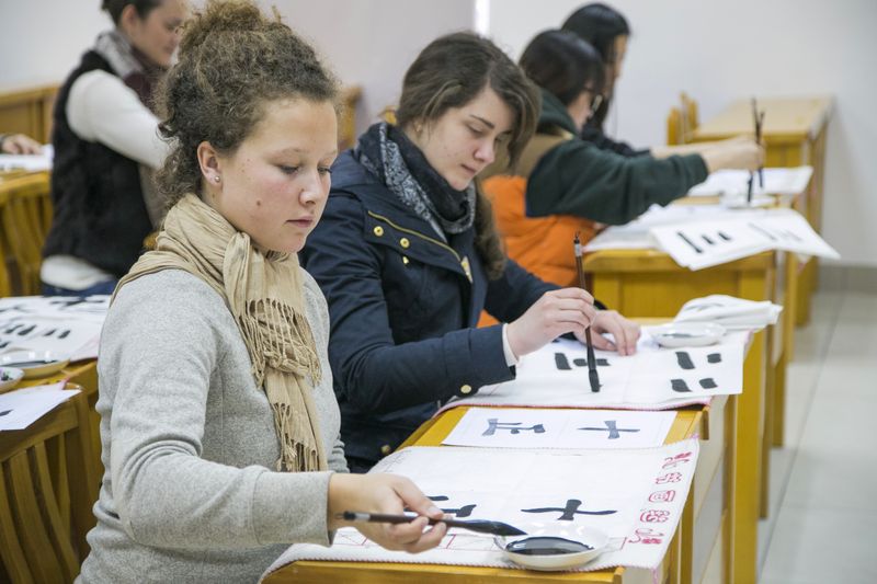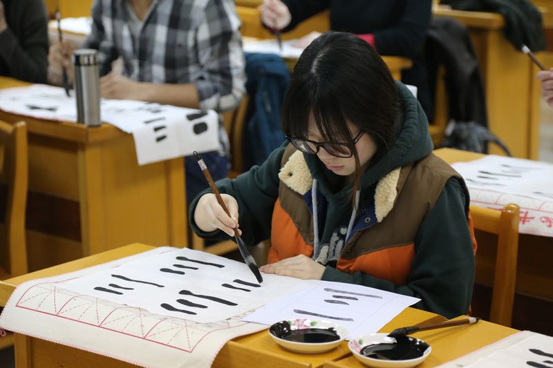 Chinese culture is famous for being charming, ancient and mysterious. In order to inspire students' interest in the Chinese language, in every semester we offer several optional cultural courses, including Taiji Kongfu, Chinese Traditional Instruments, Shanghai Dialect, Beijing Opera, Paper Cutting, etc. Here we present you one of those courese: Chinese Calligraphy.